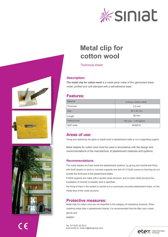 Technical Data Sheet and properties for Adhesive Metal Clip