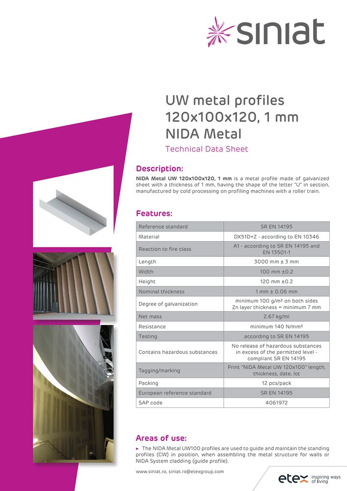 UW 120x100x120 1mm NIDA Metal - TDS EN