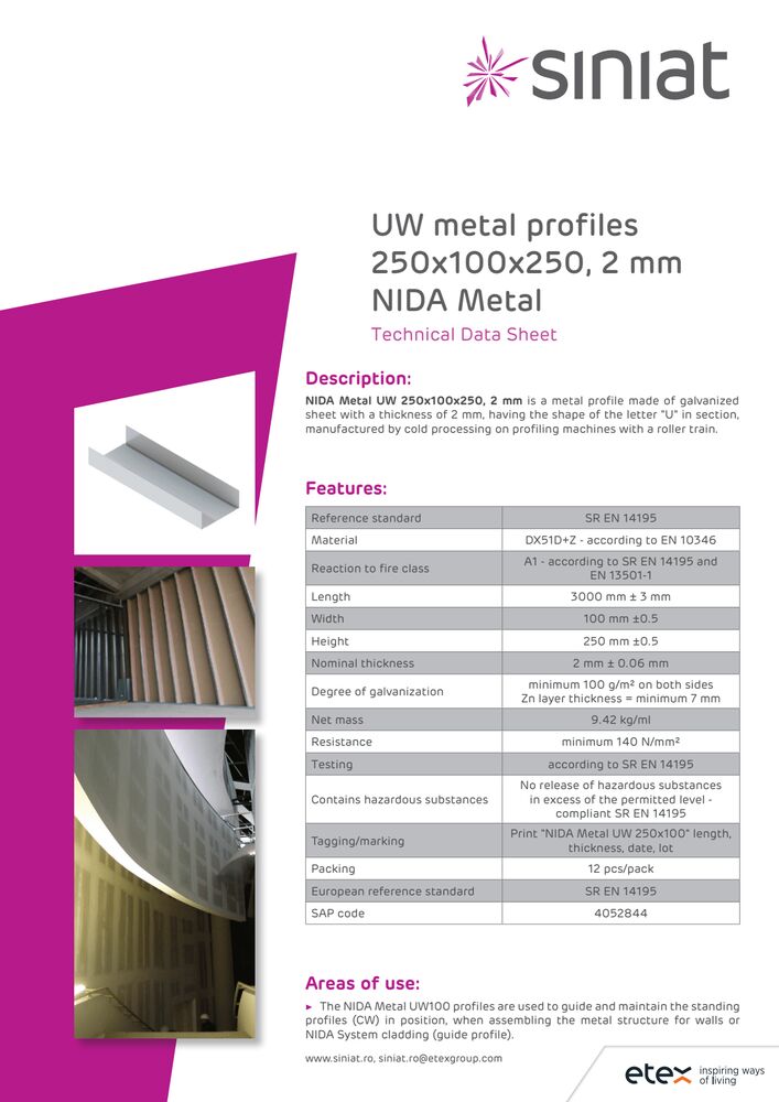 UW 250x100x250, 2mm NIDA Metal - TDS EN